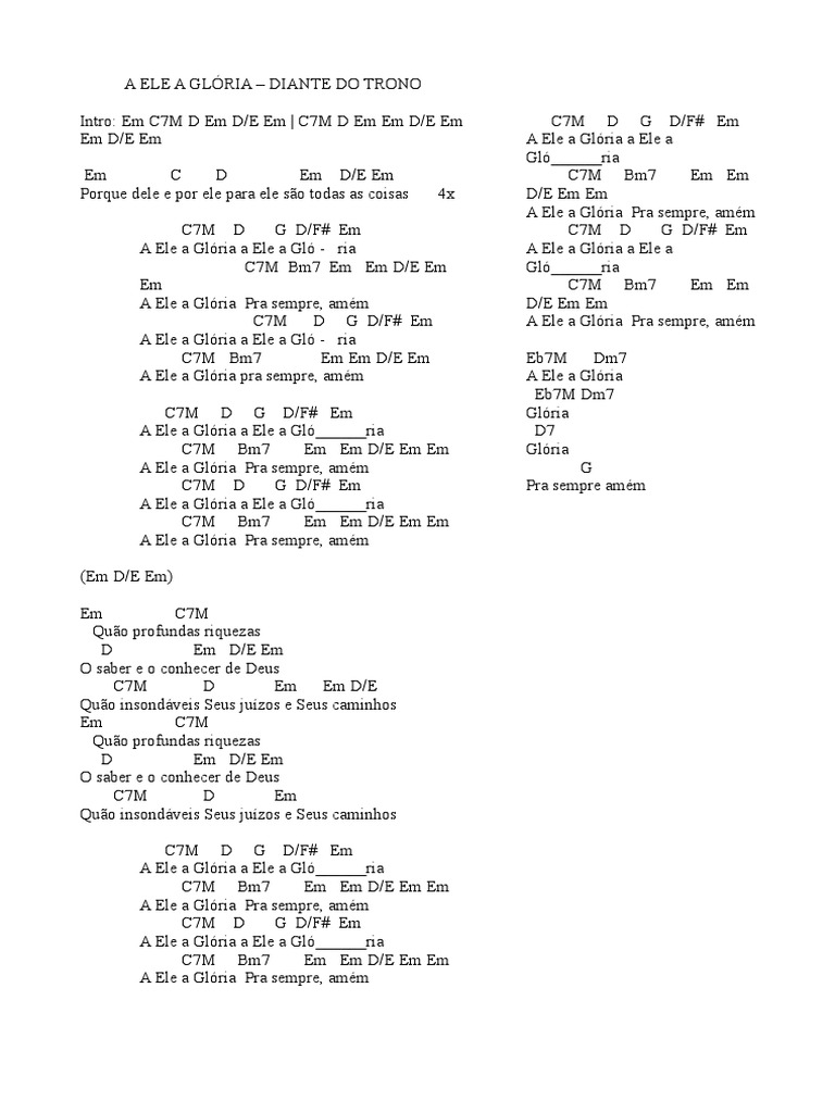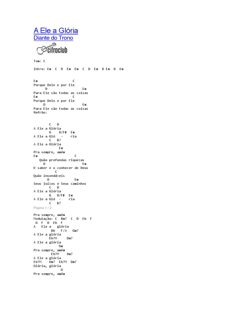 Cifra A Ele A Gloria / Diferença entre cifra melódica e cifra.